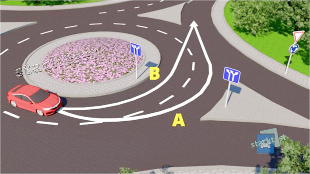 Какaя траектория правильная при выезде с круга?A.Перед поворотом налево или разворотом водитель должен заблаговременно занять крайнее левое положение, а перед поворотом направо – крайнее правое положение на стороне попутного направления движения или на полосе движения, предусмотренной для совершения такого поворота средствами организации дорожного движения. -