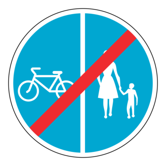 указывает, что разрешается движение пешеходов, велосипедистов и водителей электрических двухколесных самокатов. Движение велосипедистов на этой дорожке или части дорожки разрешается по одной стороне, пешеходов – по другой стороне дорожки, а водителей электрических двухколесных самокатов по обеим сторонам дорожки, как показано на знаке. Если позволяет интенсивность движения, то пешеходам разрешается передвигаться по предусмотренной для велосипедистов стороне без создания помех движению на велосипедах. Велосипедисты и водители электрических двухколесных самокатов не должны создавать опасности для пешеходов.