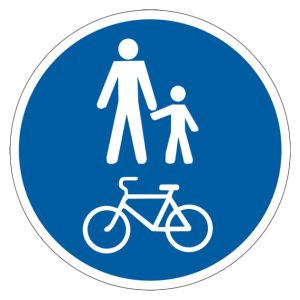 указывает, что разрешается движение пешеходов, велосипедистов и водителей электрических двухколесных самокатов. Движение велосипедистов на этой дорожке или части дорожки разрешается по одной стороне, пешеходов – по другой стороне дорожки, а водителей электрических двухколесных самокатов по обеим сторонам дорожки, как показано на знаке. Если позволяет интенсивность движения, то пешеходам разрешается передвигаться по предусмотренной для велосипедистов стороне без создания помех движению на велосипедах. Велосипедисты и водители электрических двухколесных самокатов не должны создавать опасности для пешеходов.