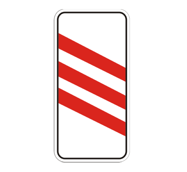 дополнительное предупреждение о приближении к железнодорожному переезду. Число наклонных полос на знаке уменьшается по мере приближения к железнодорожным путям. Полосы имеют уклон в сторону проезжей части.