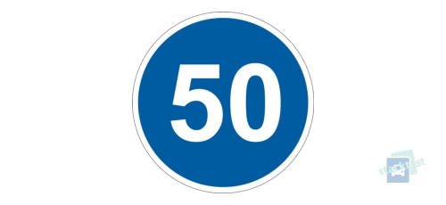 О чем сообщает водителю этот знак?КомментарийЭто предписывающий знак «Минимальная скорость», который обязывает ехать только с указанной на знаке или большей скоростью (км/ч).